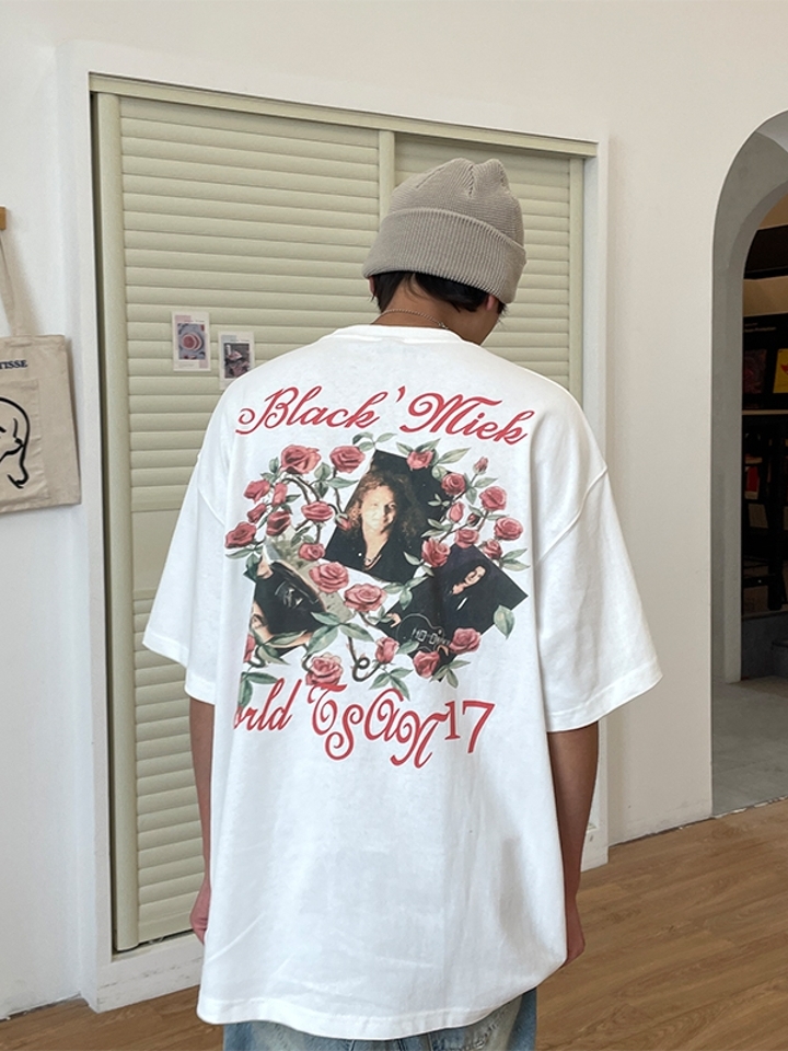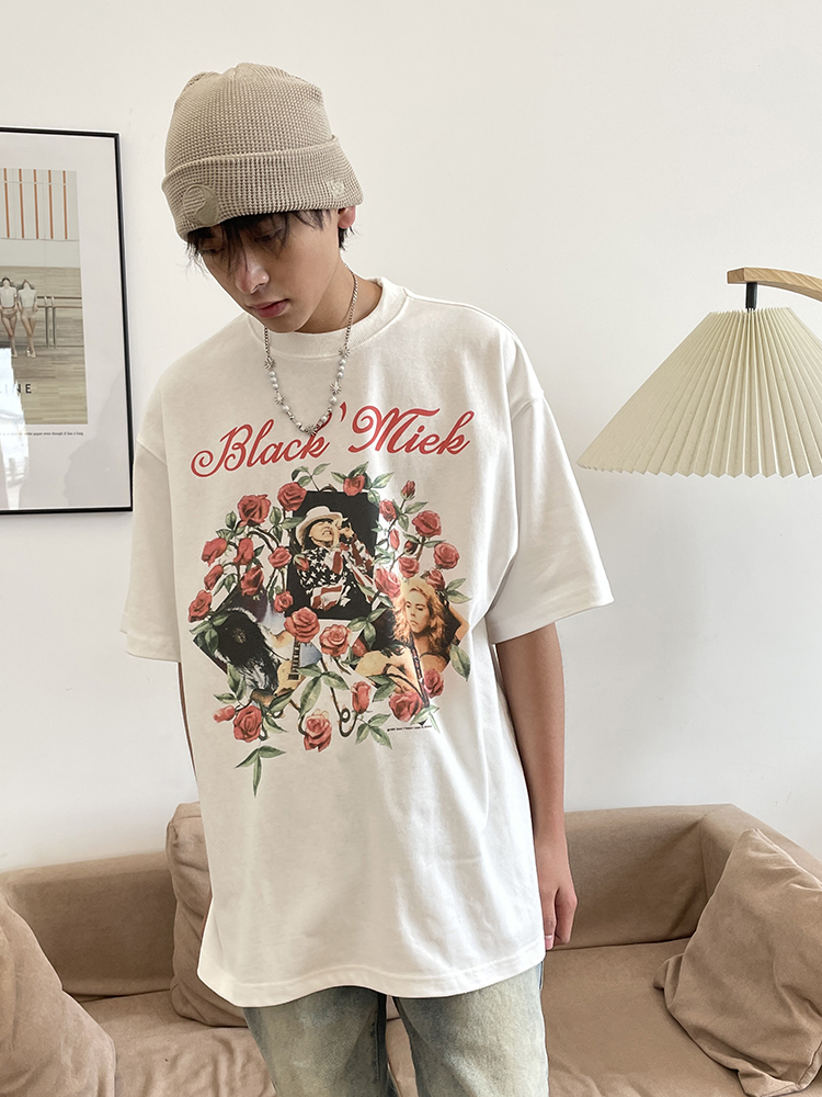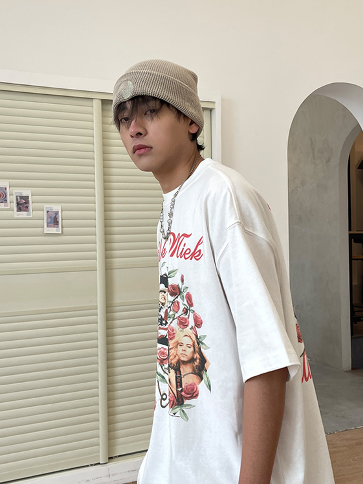 衣服质感很好,面料厚实不易皱,挺喜欢短袖上的图案的,很美式复古的风格,小领口很帅,感觉有点嘻哈那味了~