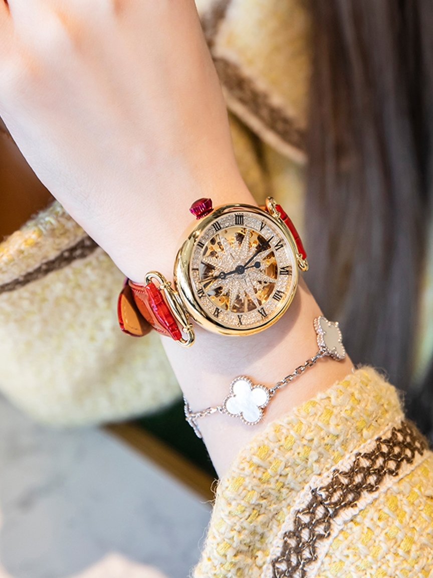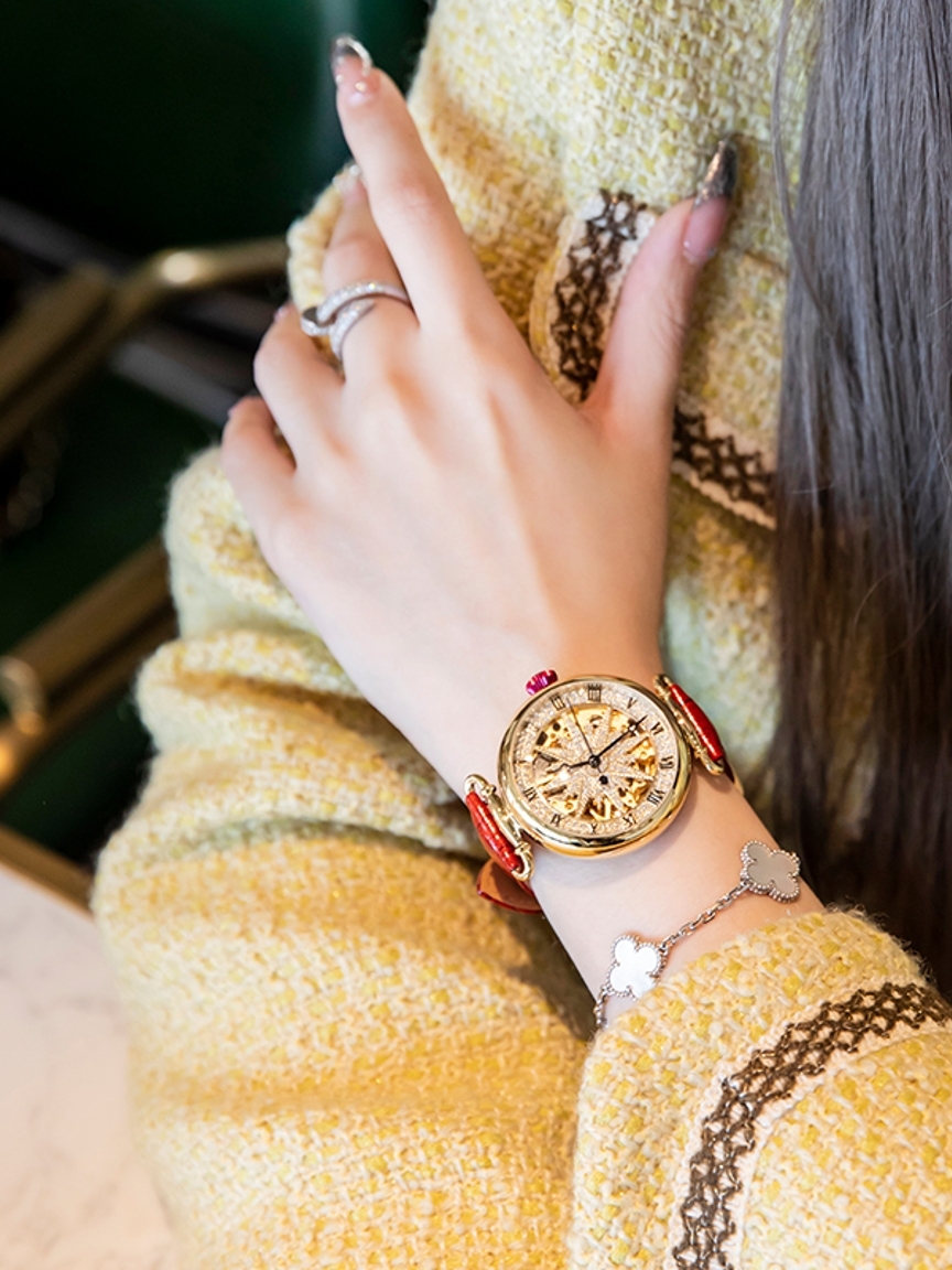 内环的设计加上白色透明仿水晶的铺垫,让手表更加的显大气的,搭配开衫更显复古。