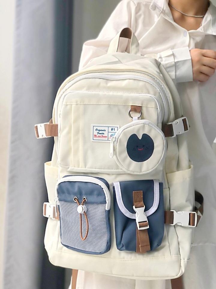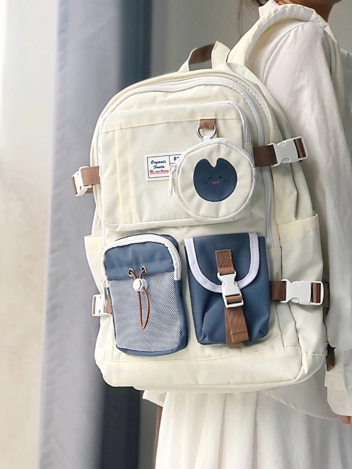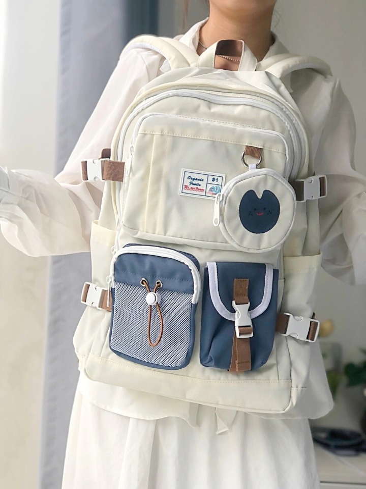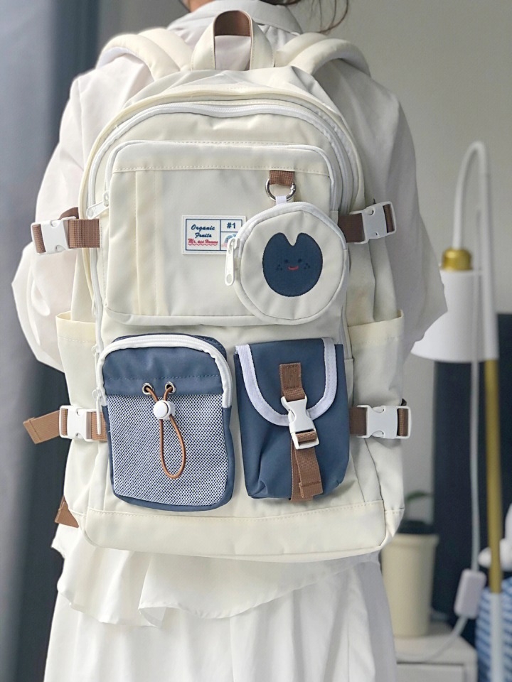 三色可选的双肩包,融入了视觉冲击感强烈的撞色元素,以及可爱青春流行的动漫元素,再加上实用的多口袋设计,使这款包包不仅附有高颜值,还贼实用。