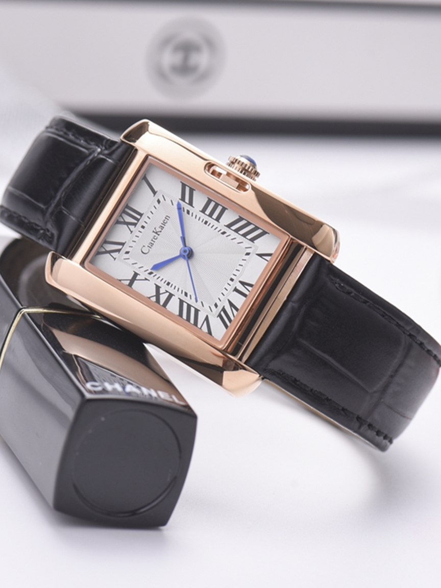 表盘的罗马数字很是显复古感啊,黑色表带搭配金色手表外框既显高级感,又增加了手表的时尚感啊,方表盘也很是精致小巧啊。