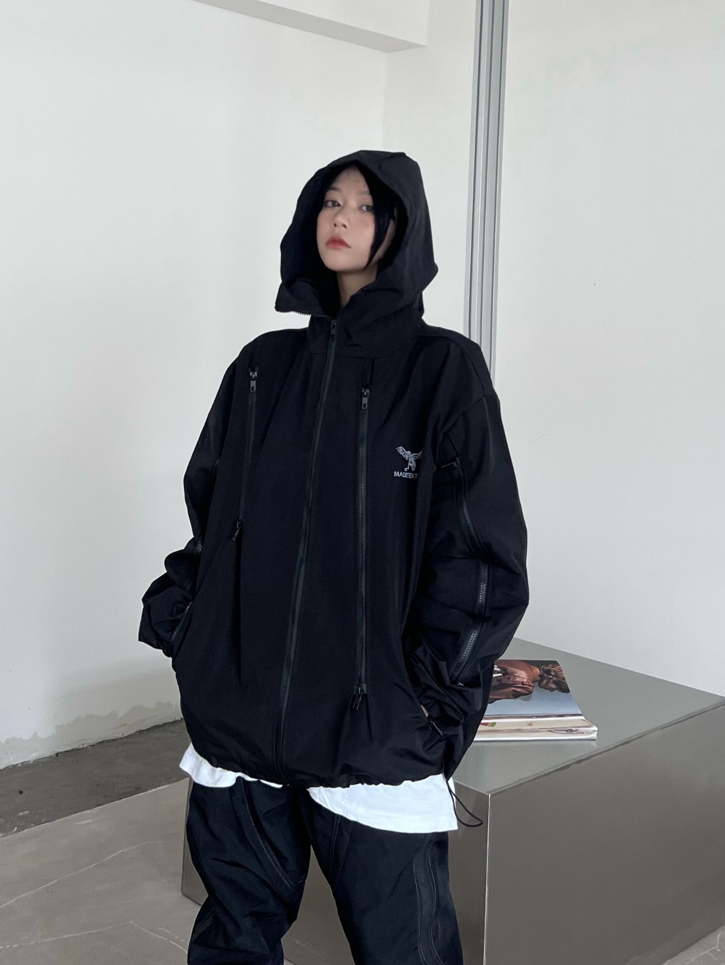 不得不说,黑色真的帅!特别潮流时尚,还很百搭哦!弧形下摆收口设计特别有层次感,我真的太爱了。