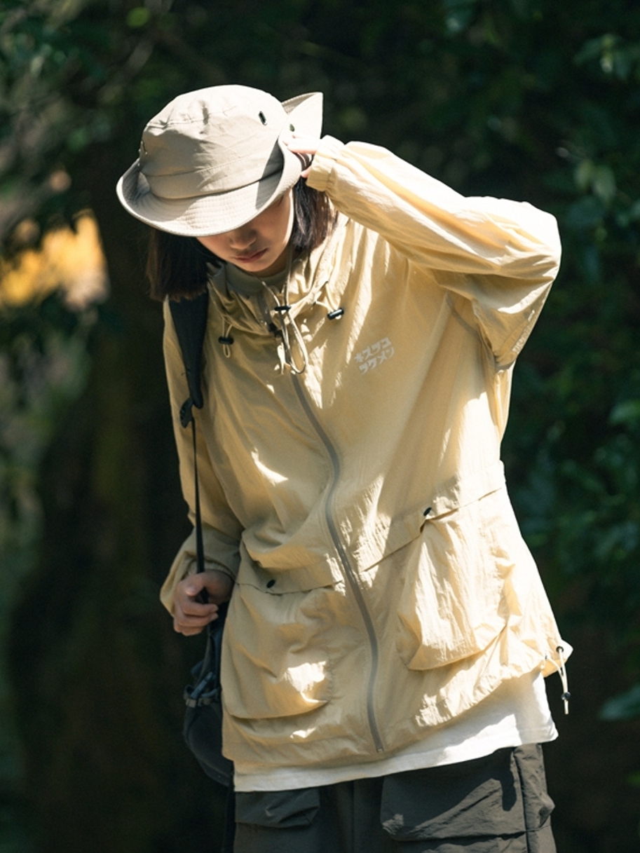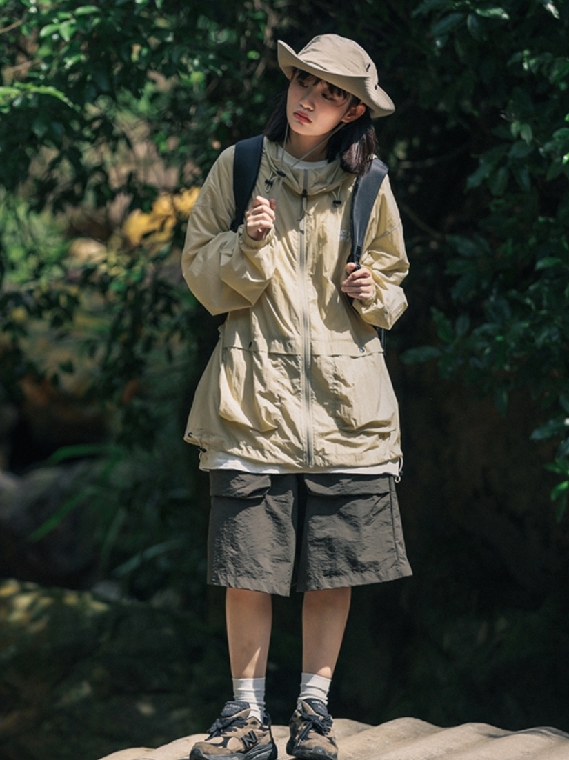 连帽防晒衣,经典的连帽设计,可以防晒的同时也非常的时髦。衣身是水漾的元素,给人带来一种街头气息。宽松的版型裁剪,穿着的时候具有修饰身材的效果。