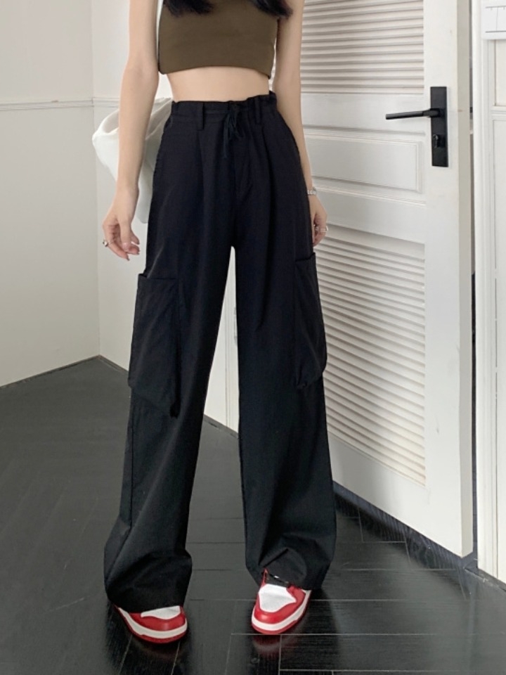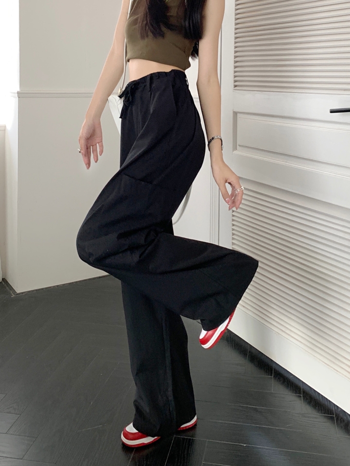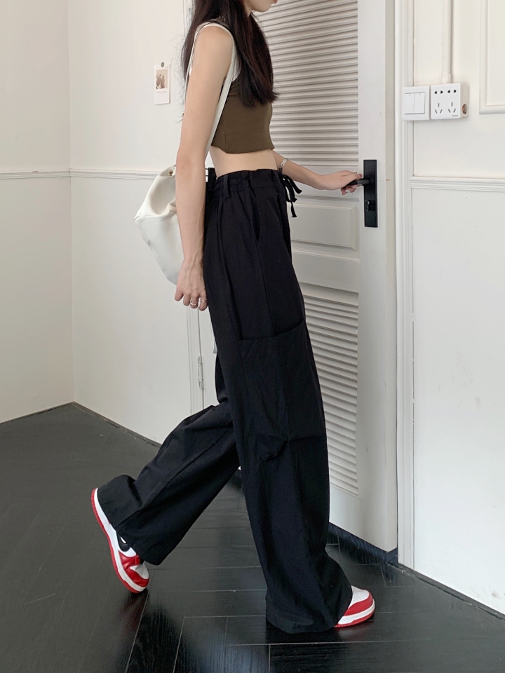 经典的黑色,配什么上衣都不会出错,裤腰抽绳带的设计,可以自由拉伸调节版型,穿起来舒适又不勒肚子。