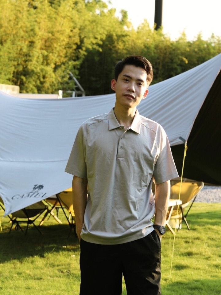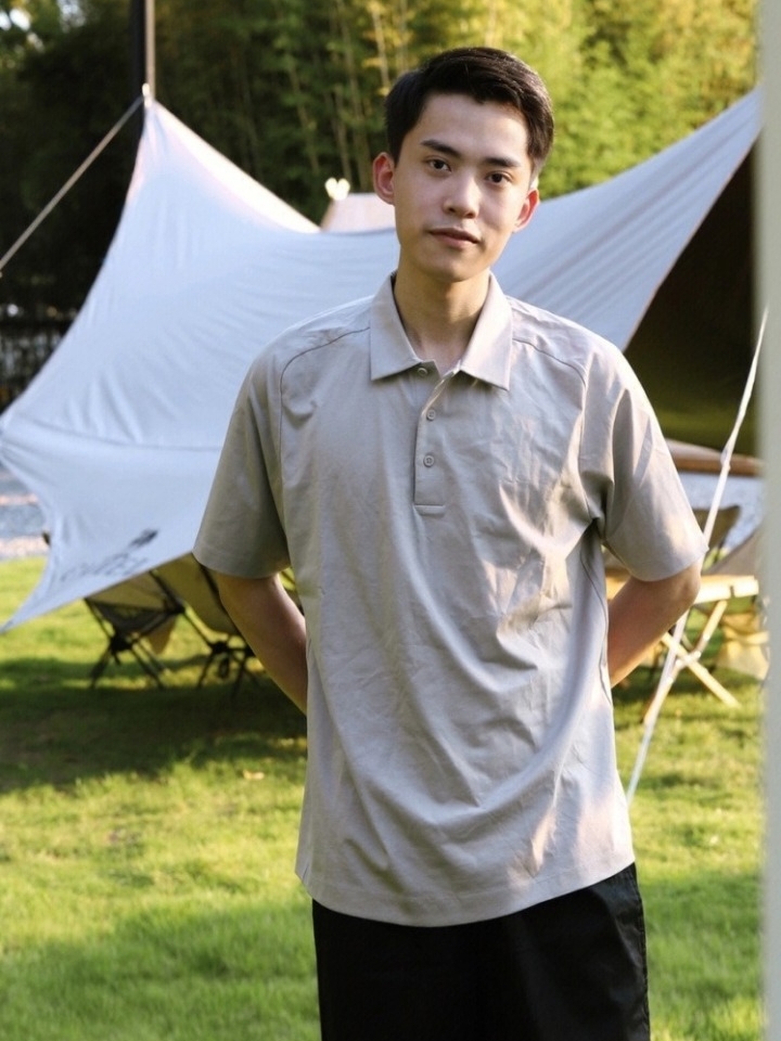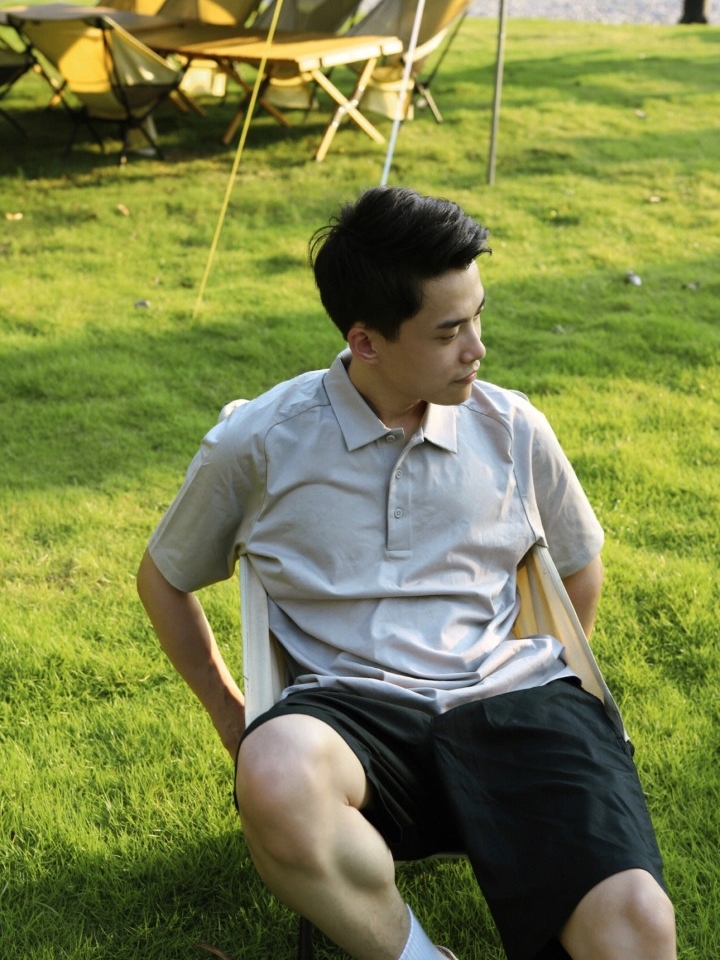 这款Polo衫采用水柔棉的面料制作,它的触感很柔软,我上身穿着也足够亲肤透气,丸全没有闷热感的,很好穿呢。