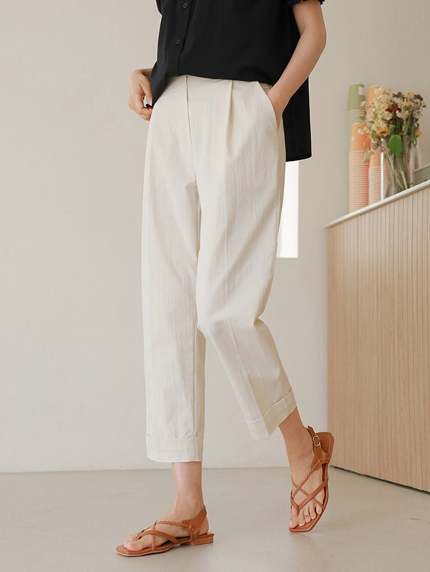 微哈伦版型的西裤,保留了知性干练的气场,更有一份随性的时尚感,视觉上有显瘦的作用。