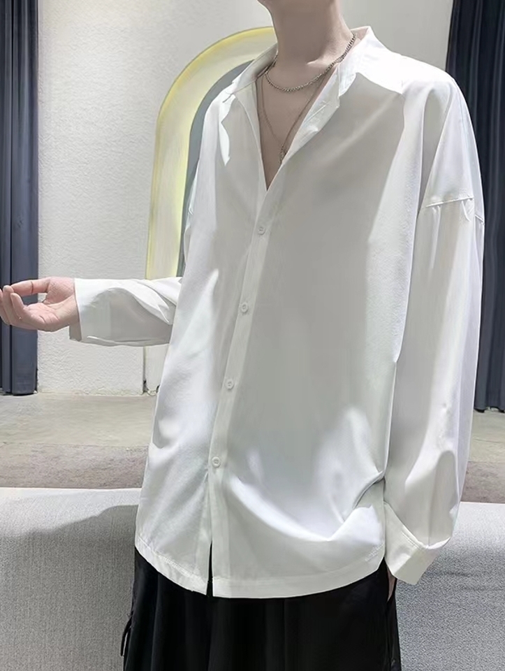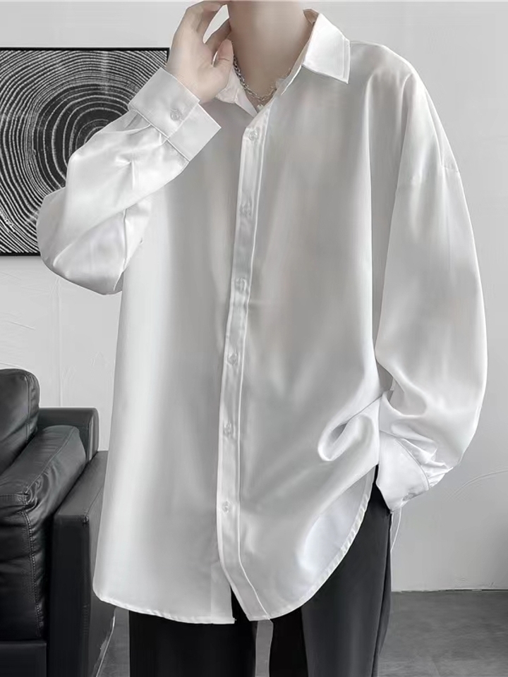 非常舒适的面料,冰丝的材质不仅触觉上是冰冰凉,穿上也是分外舒适和透气的,很适合夏日的一款衬衫。