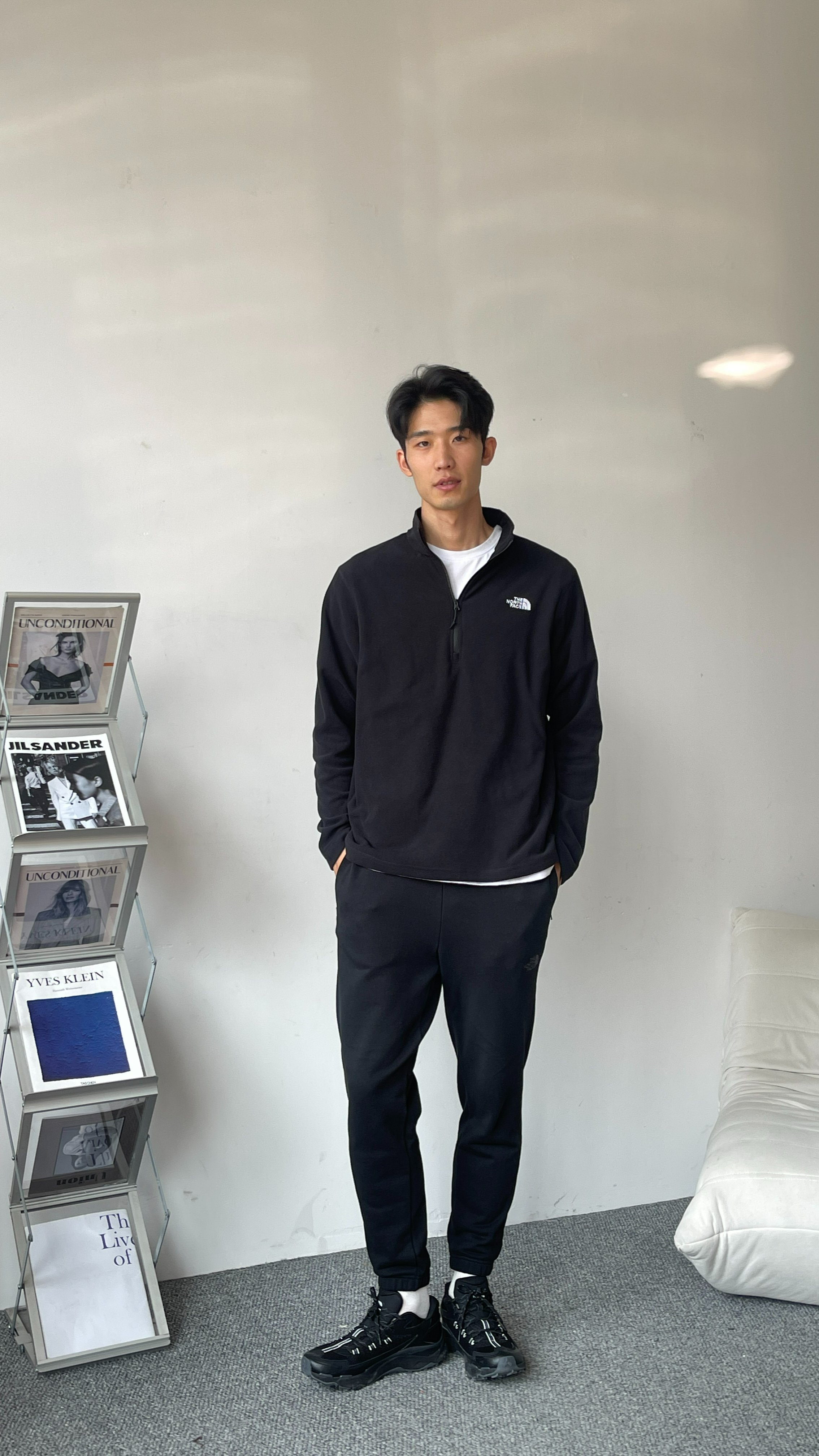 简约的高腰设计,搭配上修身的版型,上身显瘦又显高。