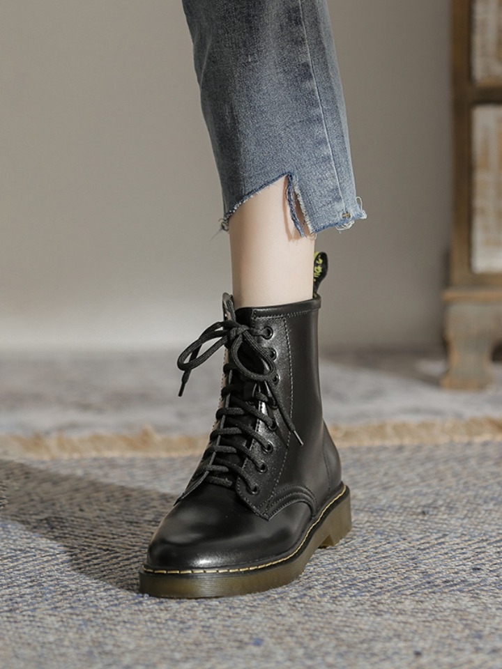 这款马丁靴选用了经典的高帮设计,秀出笔直腿部线条。圆头版型,让脚趾尽情放松不挤脚。厚底配上粗跟款式,久走不累。