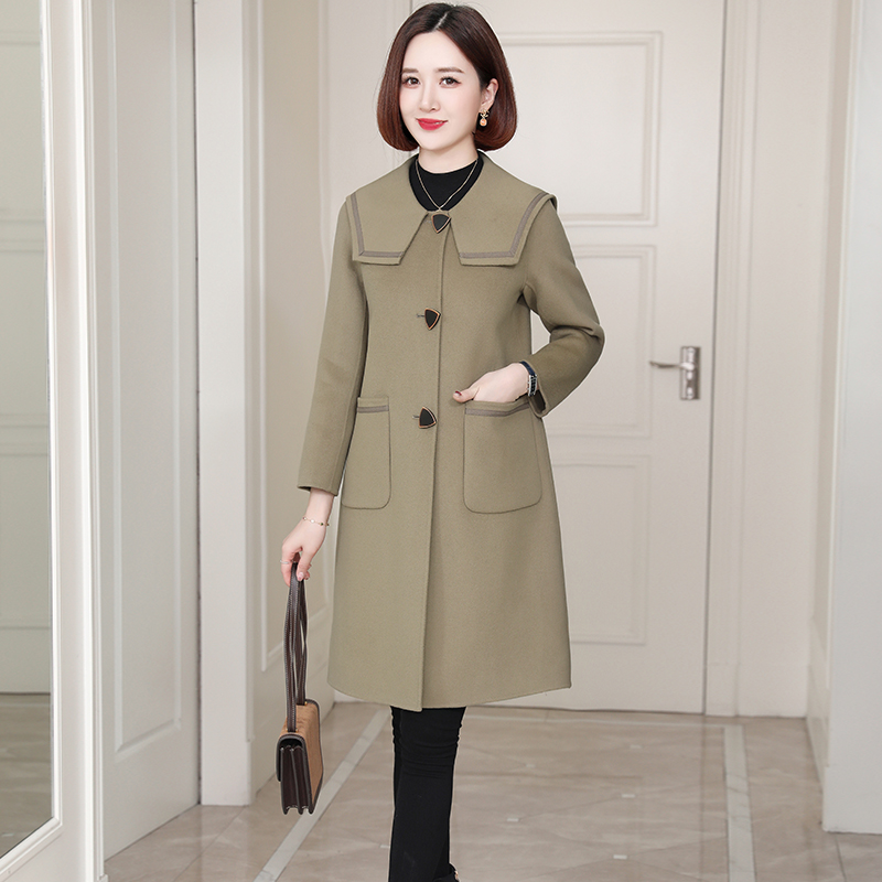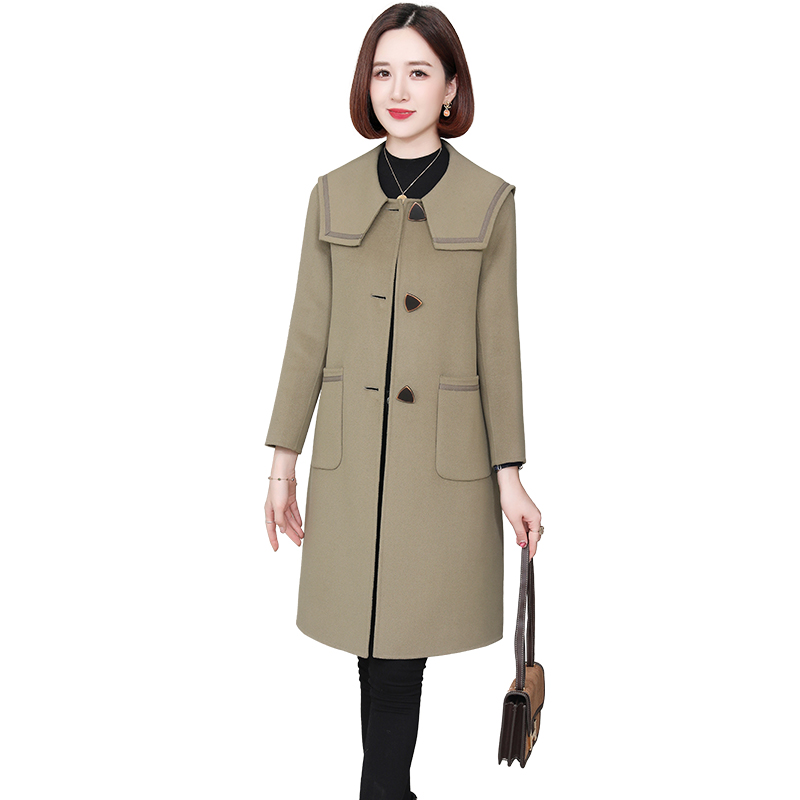 时尚的翻领设计,修饰颈部线条,凸显迷人的锁骨,双排扣的设计增添了几分时尚感,宽松的版型,穿着舒适自在,尽显优雅气质。