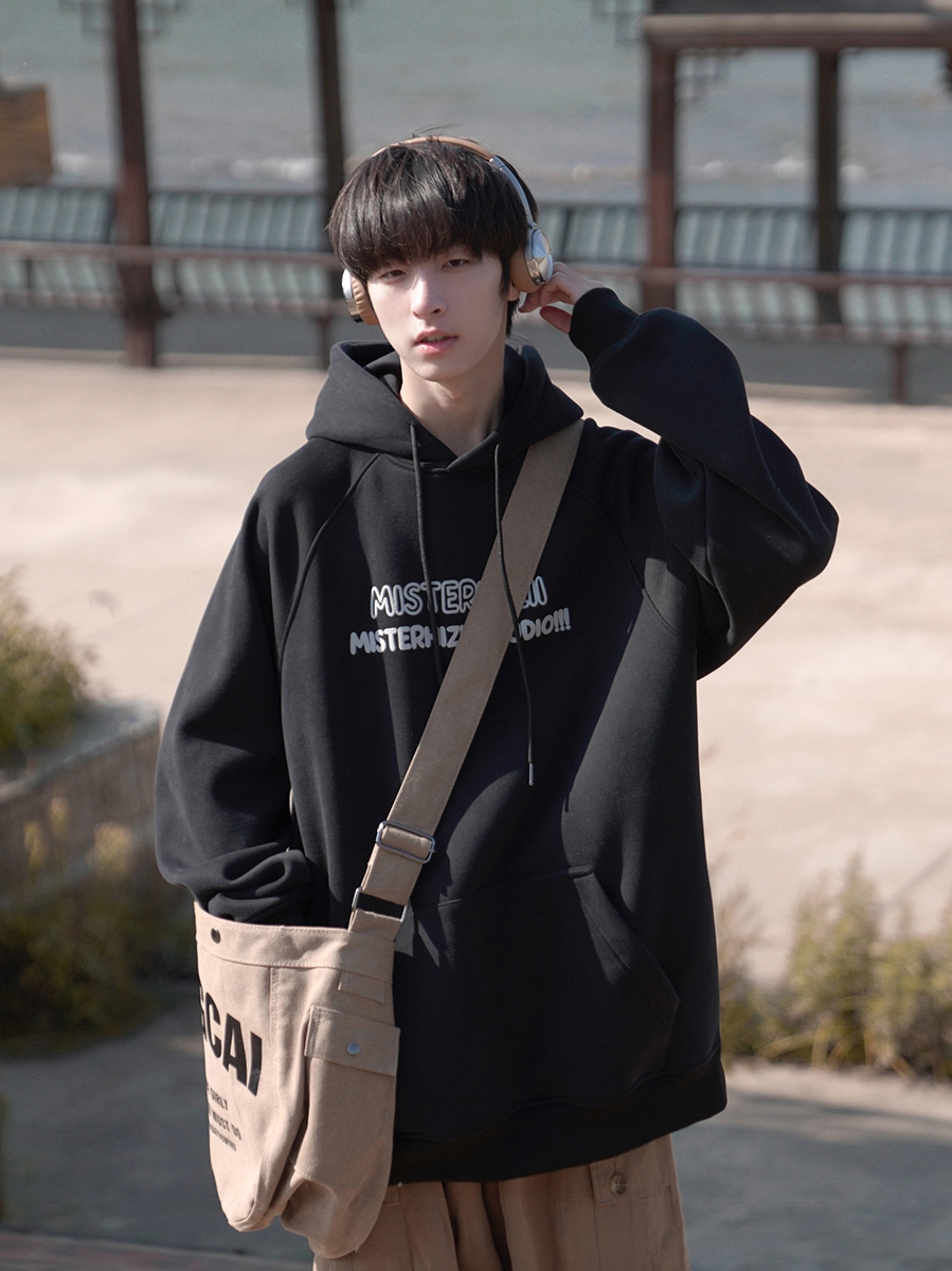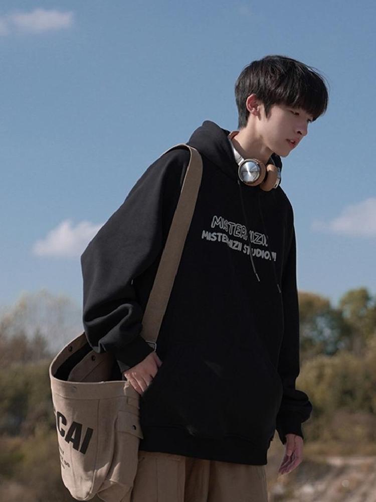 0宽松的套头卫衣以经典的黑色为主色,神秘、酷、休闲、百搭,字母印花不易褪色、不易脱落。