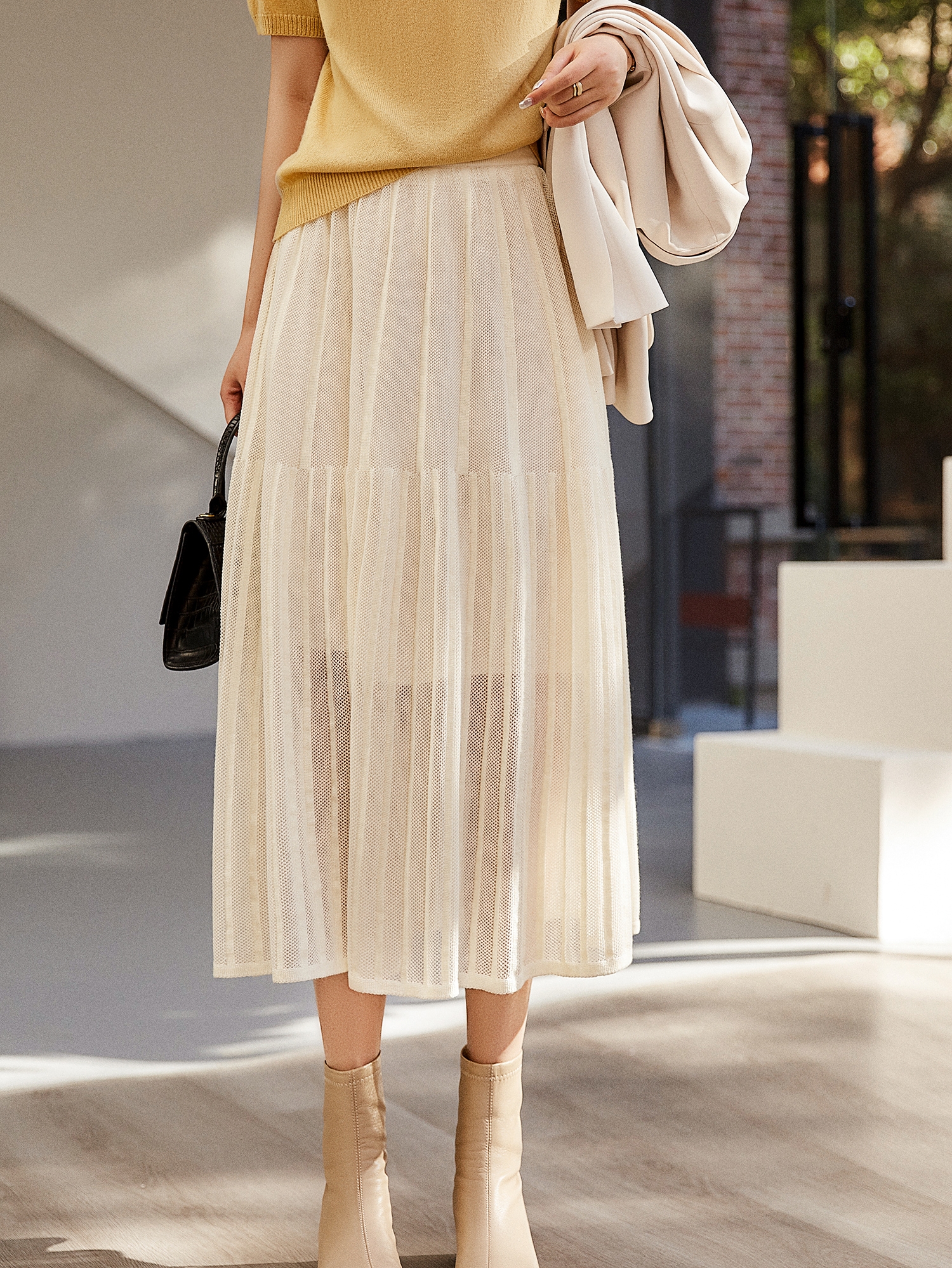 白色半身裙采用高腰版,视觉上拉长了身材比例,更显腿长。羊的材质和你的外套非常相似,这与你的许多外套更相呼应。