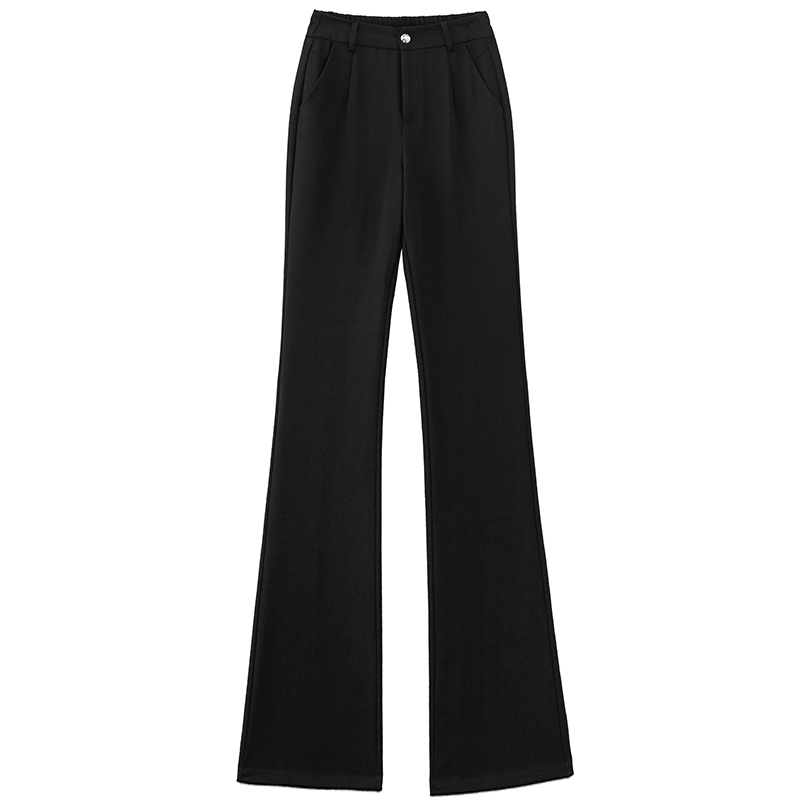 微喇裤型,修饰腿部线条,黑色的色调,经典又百搭,高腰设计,拉长身材比例,宽松版型,穿着舒适自在。