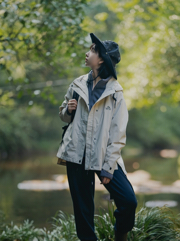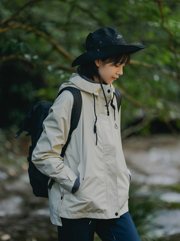 米色的冲锋衣颜色干净素雅,显得落落大方。含抓绒内胆抗寒效果强,一衣多穿。