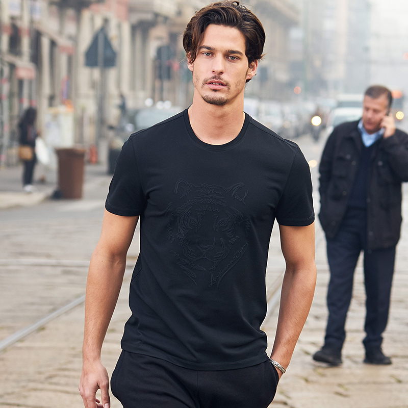 经典的圆领设计,修饰颈部线条,凸显男士的优雅气质。