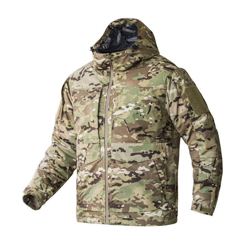 迷彩元素,彰显男士魅力,短款外套,拉长身材比例,棉服设计,穿着舒适保暖。