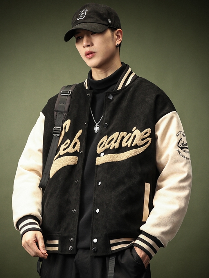 有着动感学院风感觉的棒球服外套,撞色的黑白调更让人觉得充满了青春活力,搭配牛仔裤和棒球帽,简直不要太帅气了。
