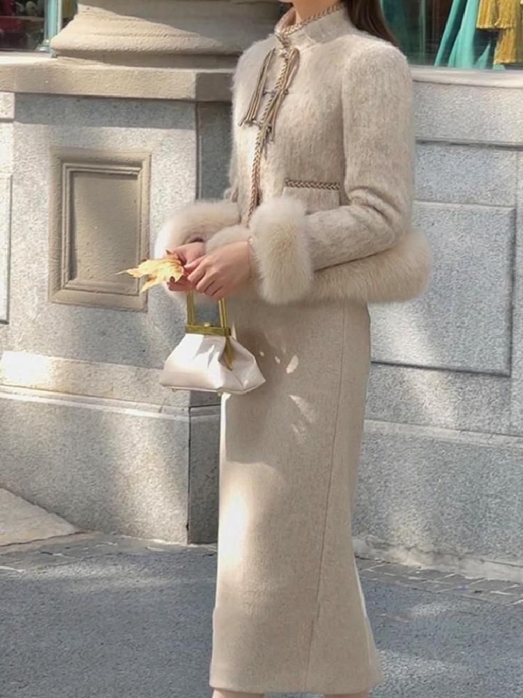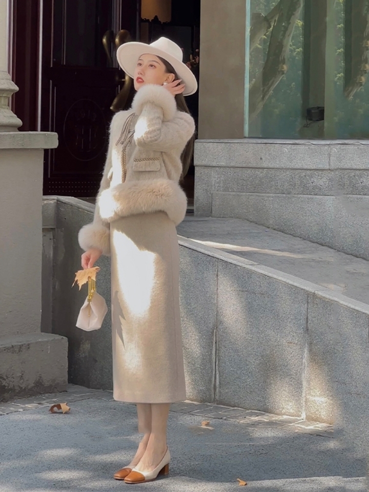 通勤文艺的羽绒时尚套装采用了个性化的造型,丰富了整体造型的美感,增添了一点小香味的美感。腰部结合腰部0的裙子搭配~