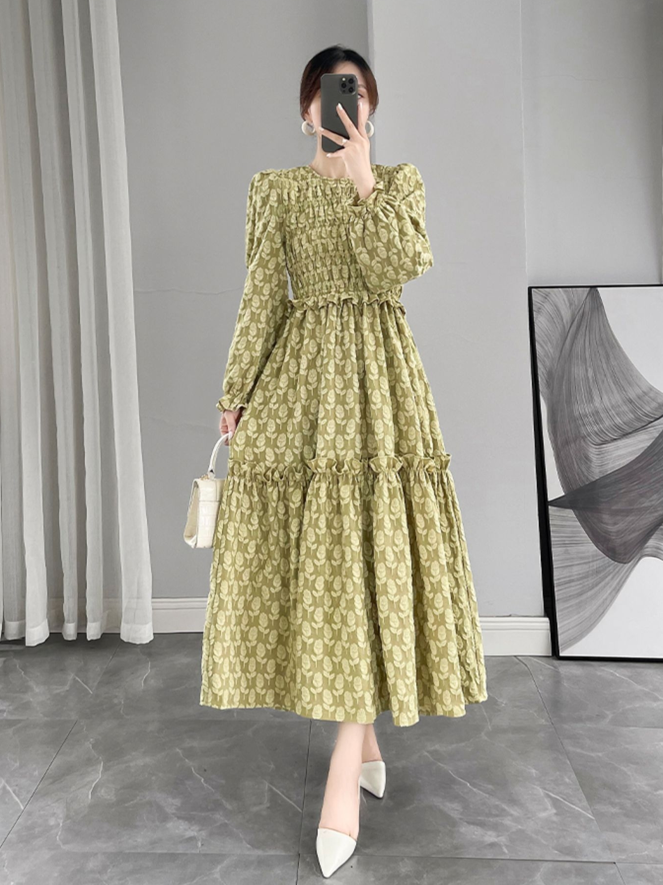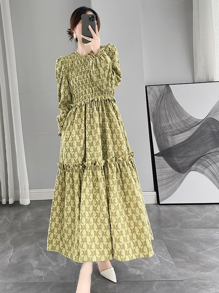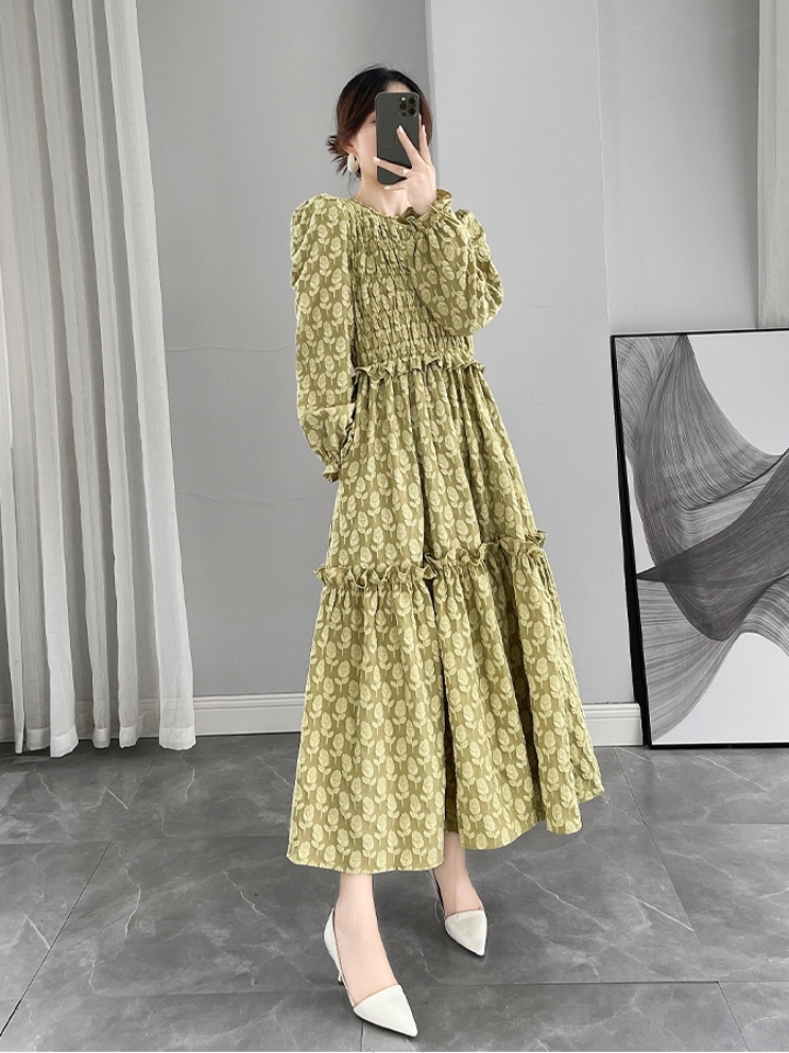 提花连衣裙为精选的优质面料打造出细腻的手感和自然的下垂感搭配连衣裙的0,凸显复古魅力,展现清新宽松的版型~