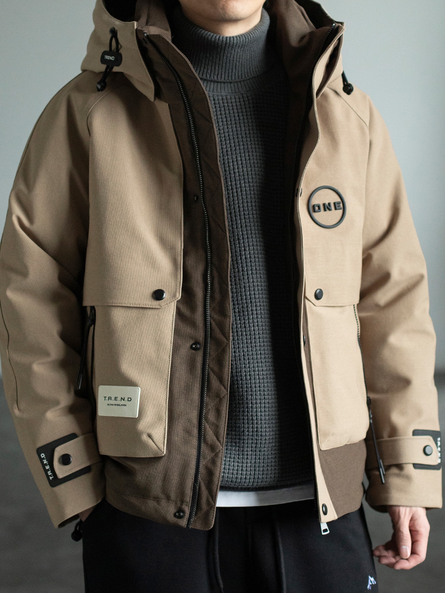 颜色也合适,即可以当冲锋衣,也可以当羽绒服,特别暖和,抗风