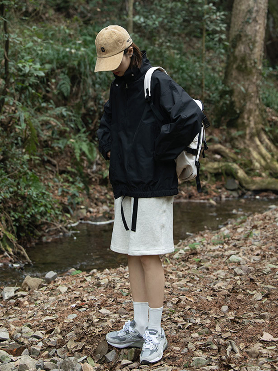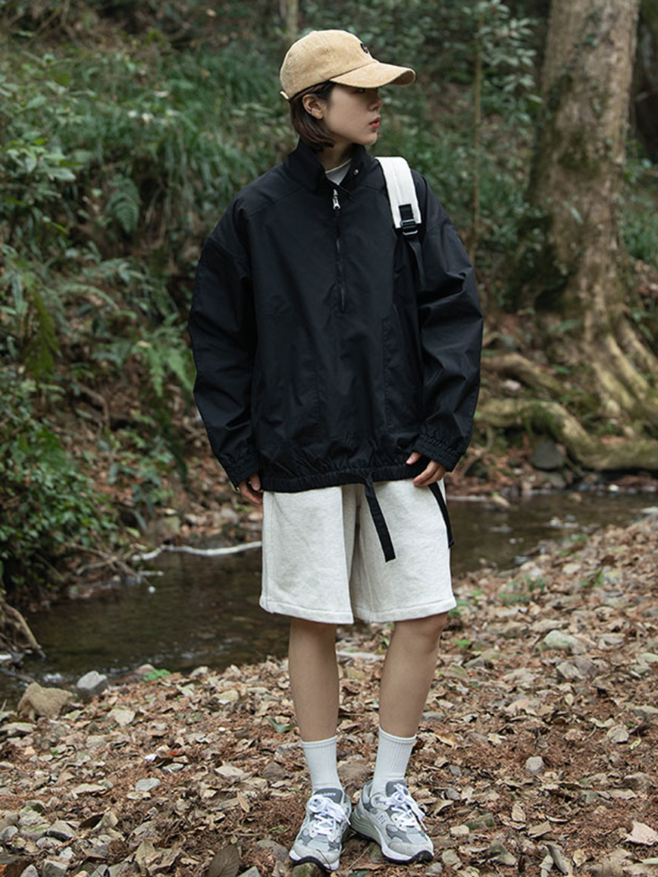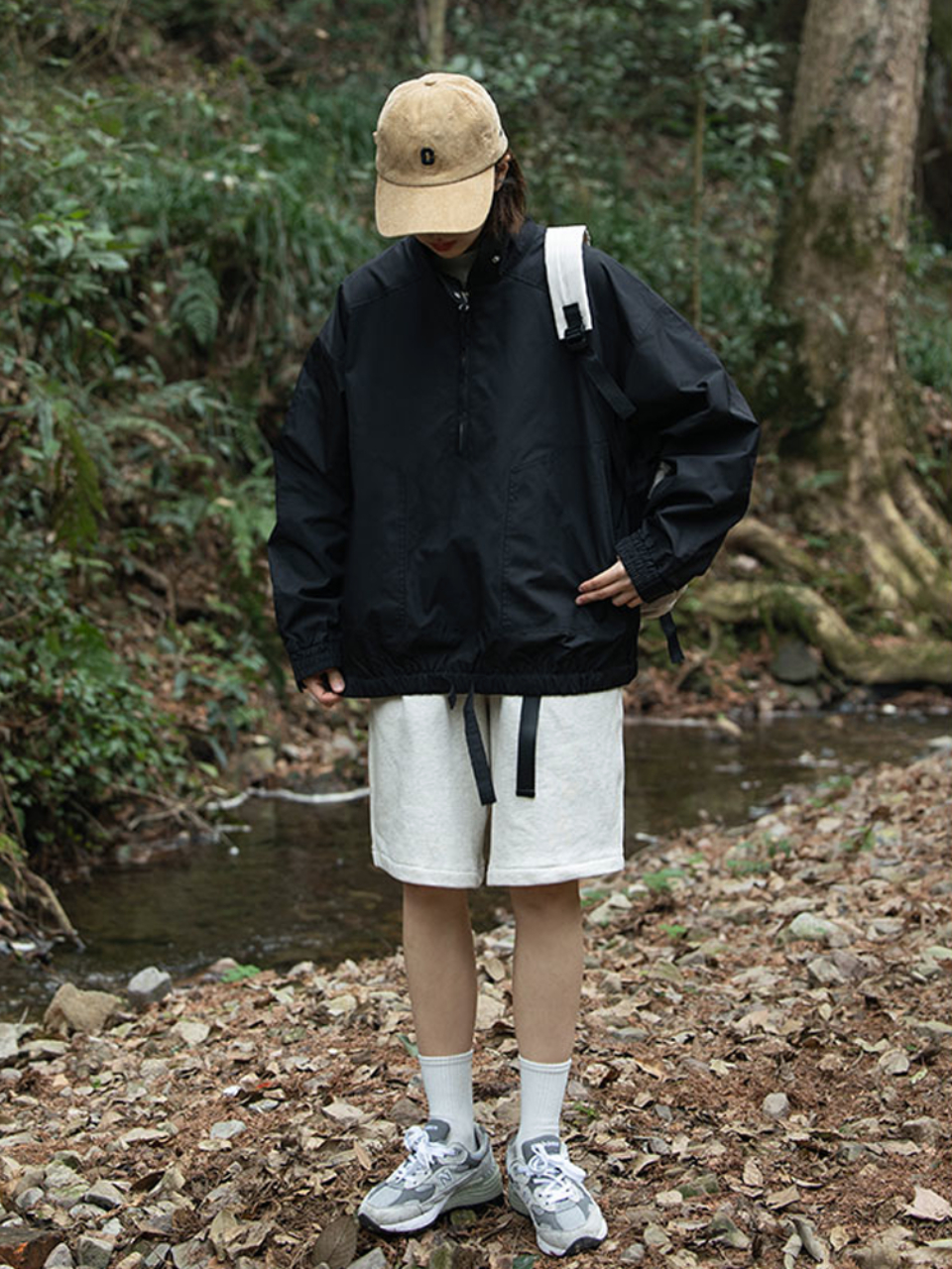 沉稳的纯黑色色泽晕染,给人沉稳大气的感觉哦,帽檐添加抽绳设计,松紧可调节,畅行不脱落,穿着完全没有束缚感呢。