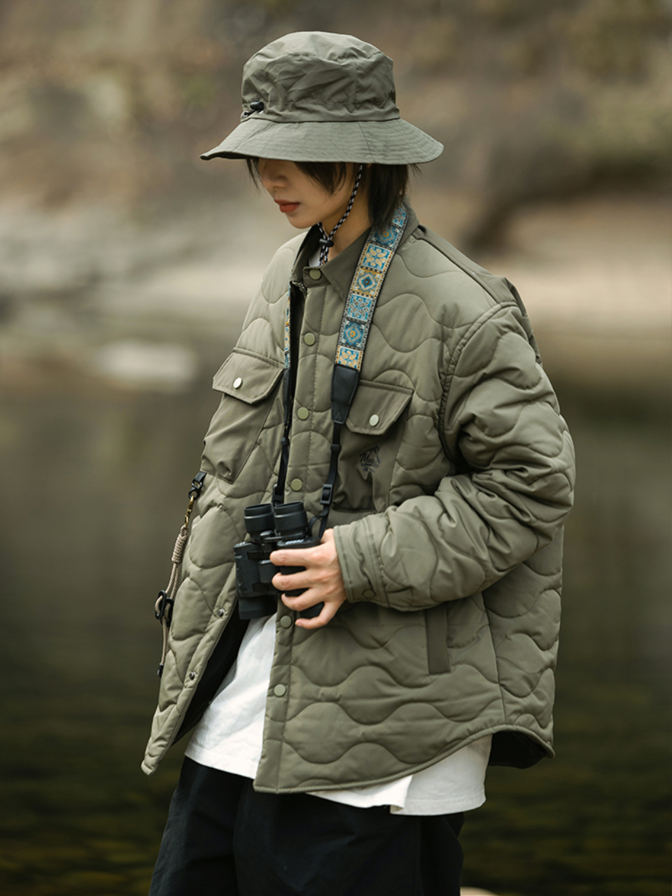 口袋设计工装棉服,在普通款式上进行了创新,将棉服穿出街头时髦味,让棉服与时尚接轨,既保暖又不糊显得臃肿。